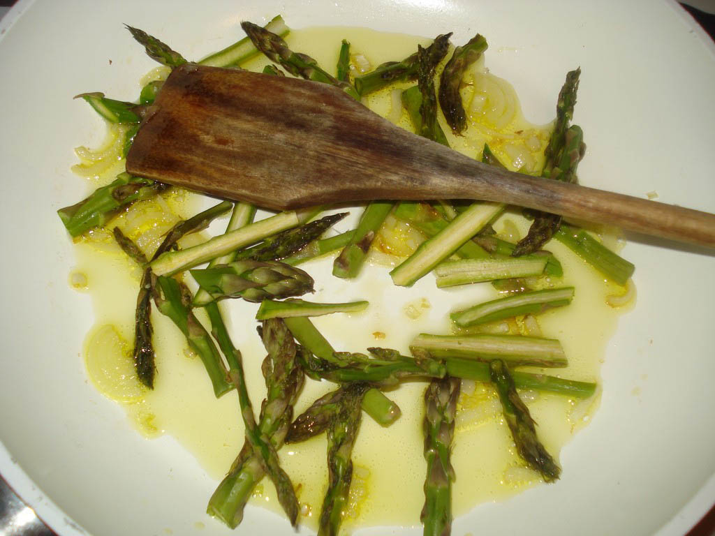 …e quindi stufare gli asparagi con un goccio d'acqua; saliamo |