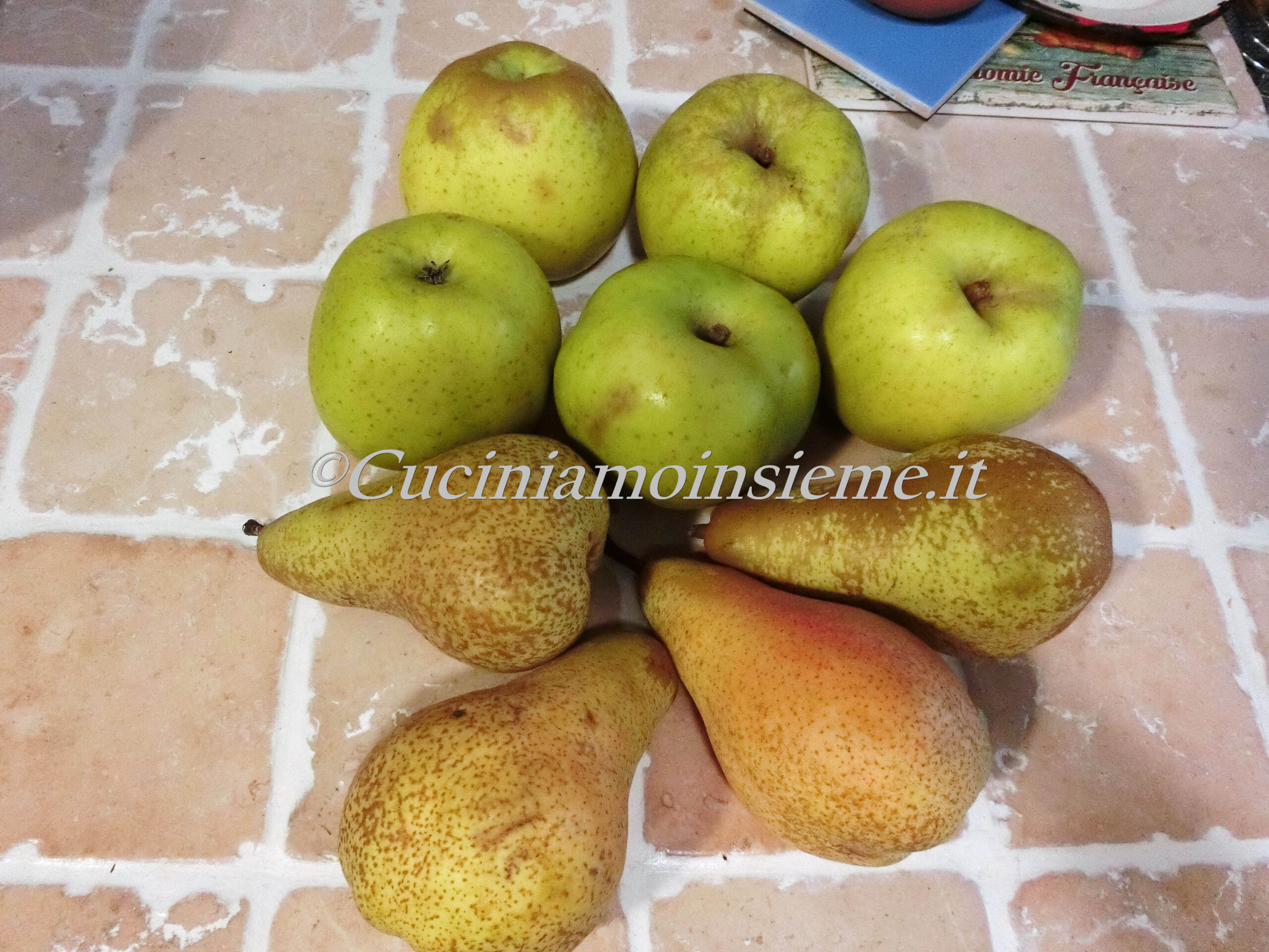 Ingredienti: uva bianca, 1 kg solo gli acini – uva nera, 1 kg solo gli acini – mele renette, 1 kg mondate – pere, 500 g mondate – Vin Santo, 240 g, + mezzo bicchiere per sciogliere la polvere di senape – cedro candito, 120 g – Senape in polvere, 40 g – Cannella in polvere, quanto basta