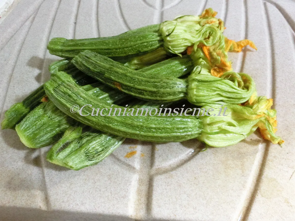 Laviamo e asciughiamo le zucchine. Se hanno il fiore potremo usarlo per altre preparazioni