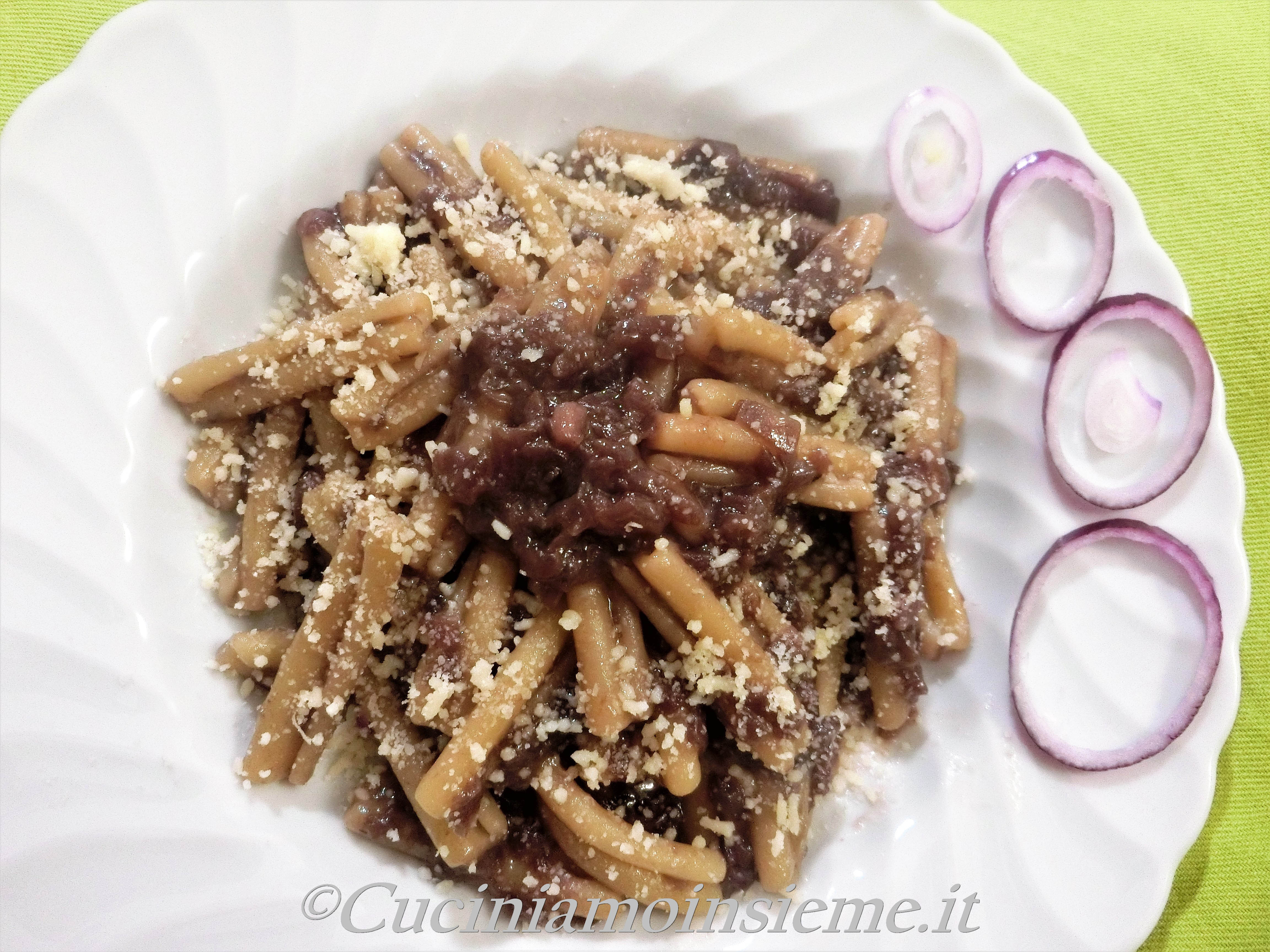 Vintage: pasta con crema di cipolle al vino rosso